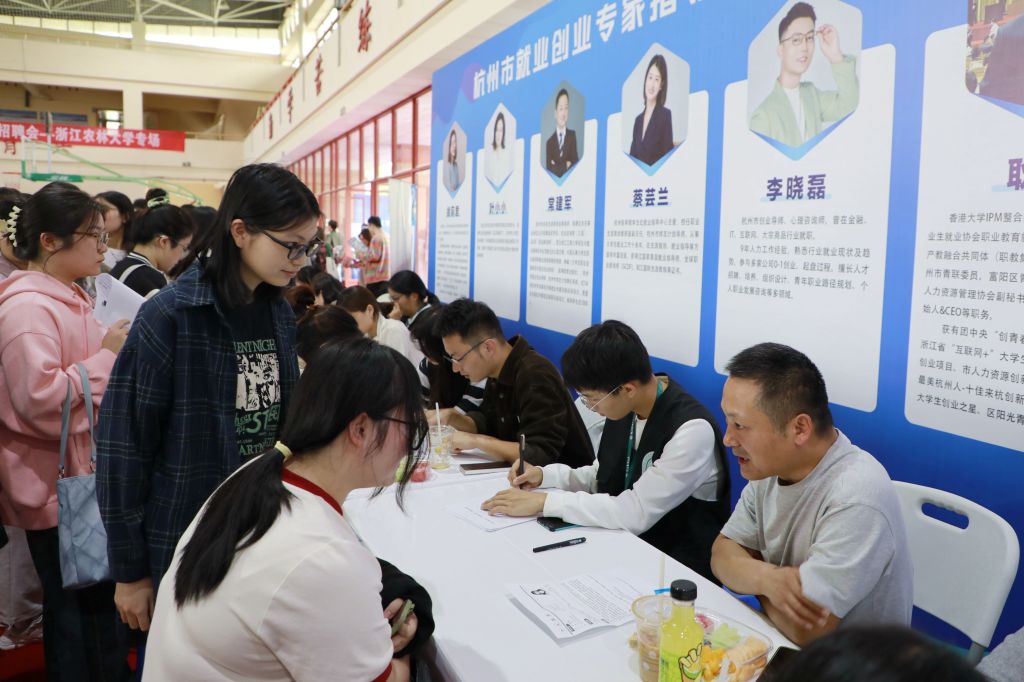 為切實提高畢業生應聘求職能力,學校就業指導服務中心還在招聘會現場設立了杭州市就業創業指導團進校園輔導點,邀請省內高校就業指導老師以及企業代表HR來現場指導畢業生完善簡歷。他們不僅幫助畢業生們完善簡歷,還傳授實用的面試技巧,讓畢業生們在真實的面試場景中更加從容自信。招聘會現場還設立了出國(境)升學、國內升學、考公考編等多個咨詢臺,引入了 “AI就業導師”的智能化服務,為畢業生們提供了高效、便捷的就業指導。