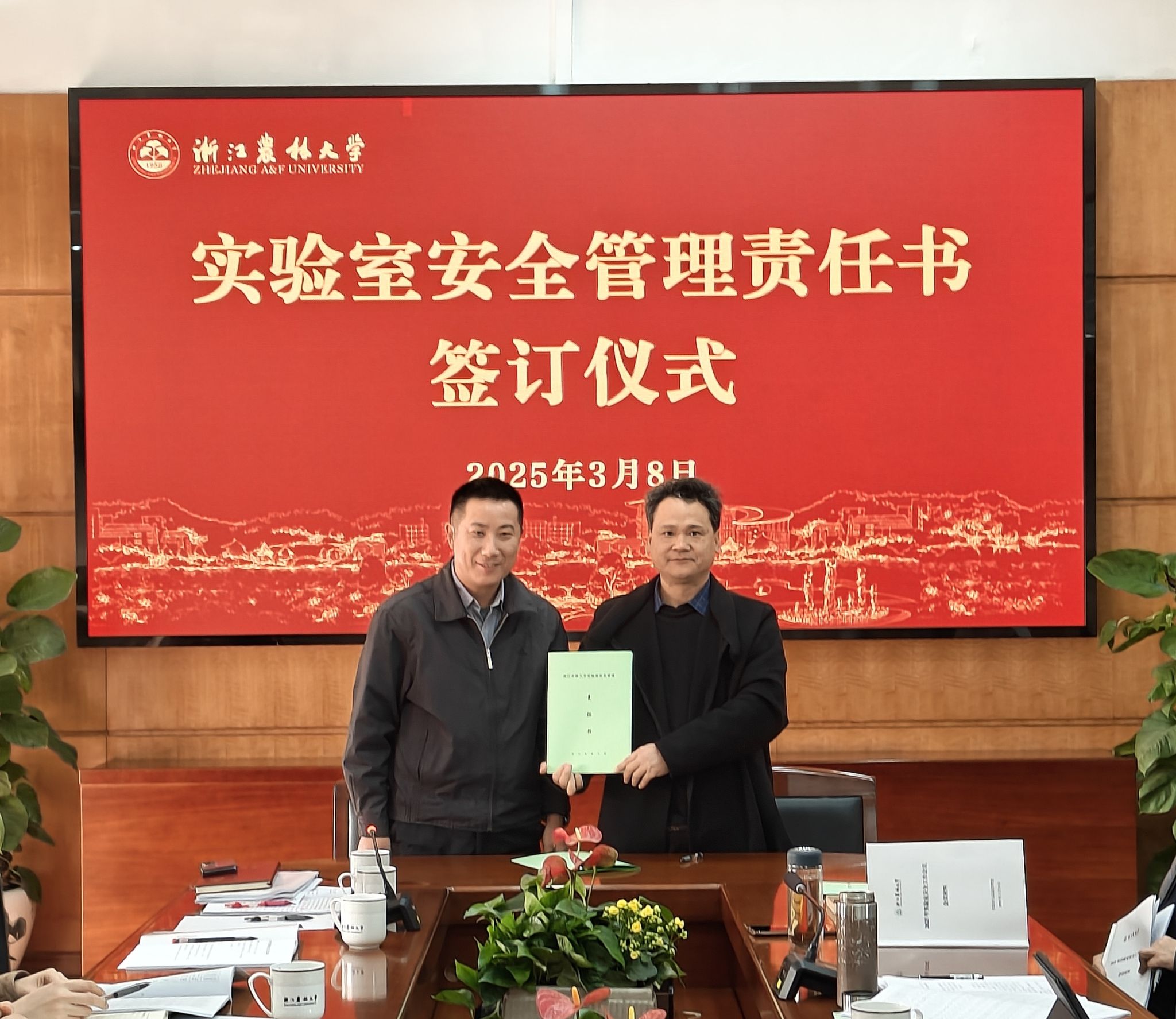 會上,學校還和二級單位代表舉行了2025年實驗室安全管理責任書的簽訂儀式。
