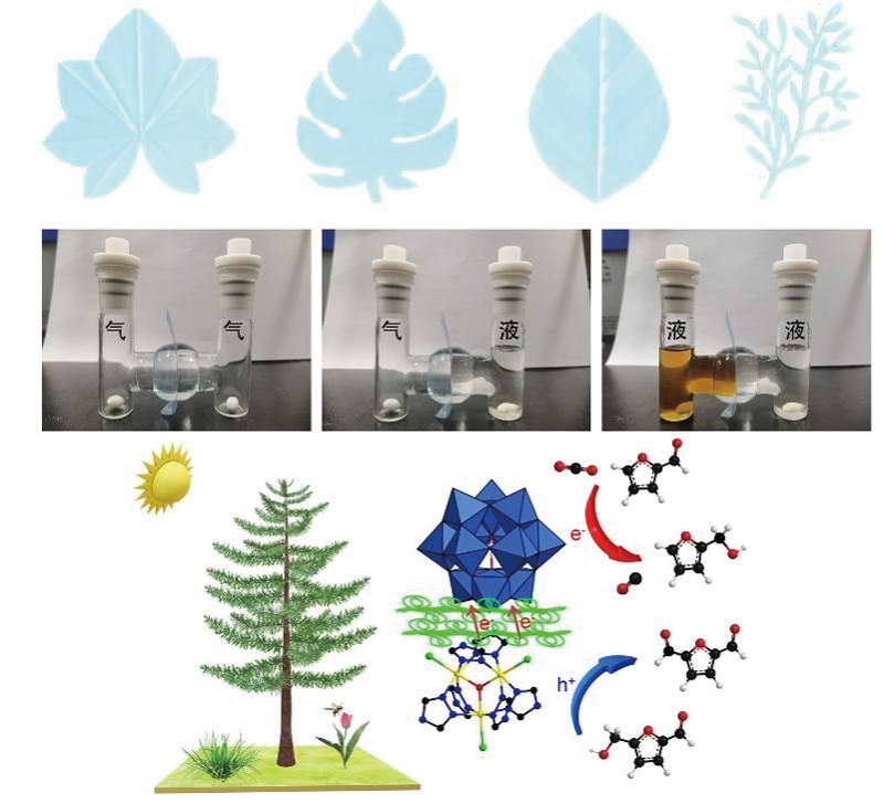 在長(zhǎng)期研究植物光合作用的基礎(chǔ)上,浙江農(nóng)林大學(xué)生物質(zhì)能源材料研究團(tuán)隊(duì)的李華豐博士、白麗群教授和河南大學(xué)馬鵬濤教授設(shè)計(jì)了一種雙功能人造樹葉,構(gòu)建了光轉(zhuǎn)化全反應(yīng)體系。這一新型的人造樹葉,通過(guò)充分發(fā)揮纖維素定向電子傳遞作用與多金屬氧酸鹽電子儲(chǔ)存的功能,在光照的條件下,實(shí)現(xiàn)了電荷快速分離、電荷儲(chǔ)存與生物質(zhì)能源高效轉(zhuǎn)化。