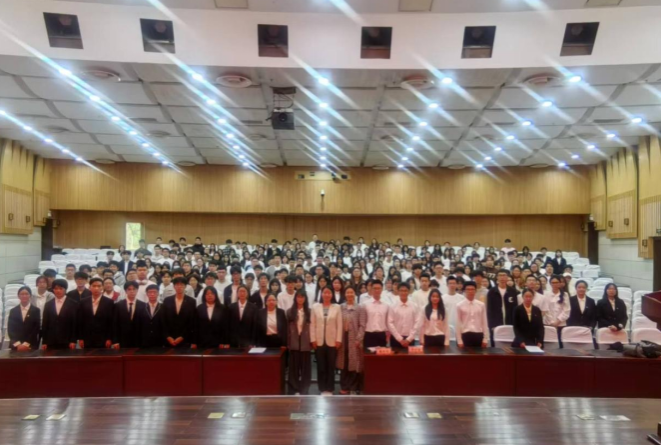 近日,2023-2024學(xué)年第二學(xué)期新發(fā)展團(tuán)員入團(tuán)儀式在東湖校區(qū)圖書館第一報(bào)告廳舉行。校團(tuán)委書記魏玲玲出席儀式。