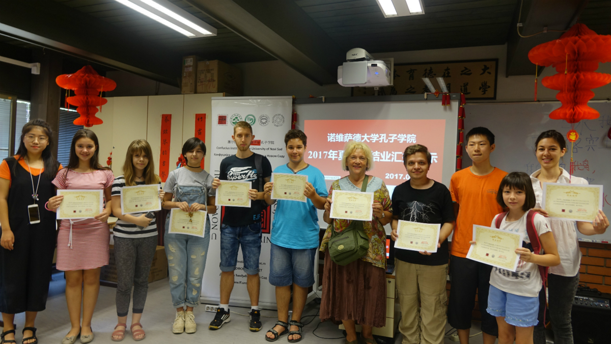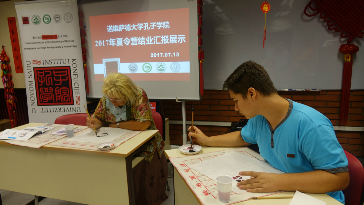 當(dāng)?shù)貢r(shí)間7月13日,諾維薩德大學(xué)孔子學(xué)院2017“學(xué)漢語(yǔ) 行天下”夏令營(yíng)落幕。本次夏令營(yíng)為期12天,開(kāi)設(shè)入門(mén)、中級(jí)、高級(jí)等漢語(yǔ)學(xué)習(xí)班,融入國(guó)畫(huà)、書(shū)法、剪紙和抖空竹等文化體驗(yàn)課。學(xué)員年齡最大的為70歲,最小的僅4歲,不少是旅塞華人子女。
