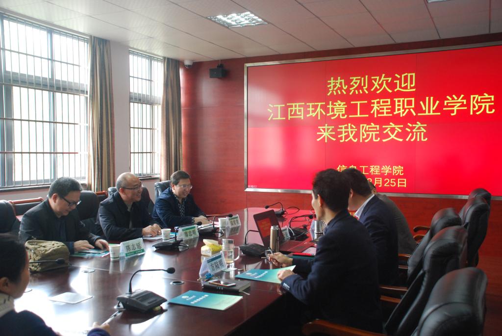 3月25日上午,江西環境工程職業學院副院長廖忠明一行來信息學院調研。信息學院院長徐愛俊接待了來訪客人,雙方就林業信息化建設及開展深度合作等內容進行了研討和交流。